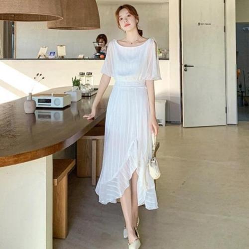[오너클랜]인기상품 키밍 여름 화이트 쉬폰원피스 반팔 루즈핏 롱원피스 [WED8082_260304]