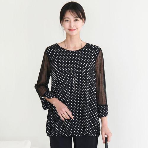 [드리다]여성 봄 여름 도트 쿨 스판 7부 빅사이즈 티셔츠 50-60대 중년여성 엄마옷 마담옷 선물