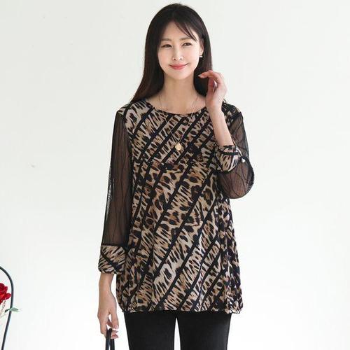 [드리다]여성 봄 여름 호피 레오파드 쿨 스판 7부 빅사이즈 티셔츠 50-60대 중년여성 엄마옷 마담옷 선물