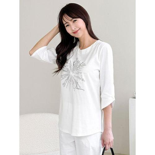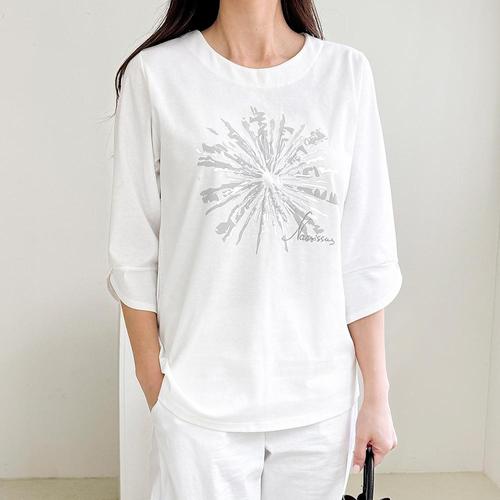 [드리다]여성 봄 여름 프린팅 면 빅사이즈 7부 티셔츠 40-50대 미시 중년여성 엄마옷 캐주얼 출근 모임