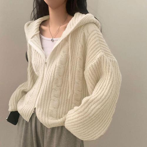 [오너클랜]인기상품 여리무드 케이블 니트 후드 집업 가디건 아이보리 데일리 아우터 [WFLXZGQ_260211]