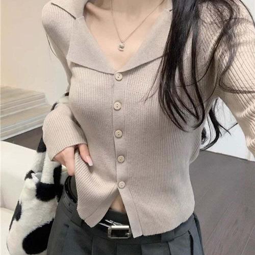 [셀럽하우스]여성 KQXM1057 여리 스타일 브이넥 여성스러운 긴팔 가디건
