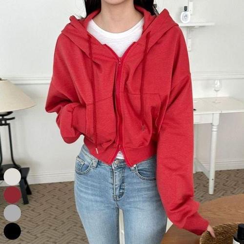 [셀러허브_여성트랜드패션]여자 간절기 숏 무지 후드집업 5컬러 얇은 기모 후드