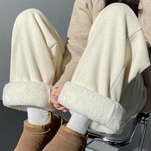 따뜻한 플리스 안감 와이드 레그 팬츠 겨울 하이웨이스트 따뜻한 스트레이트 레그 팬츠 여성용 부드러운 의류 캐주얼 롱 트라우저 아웃도어웨어