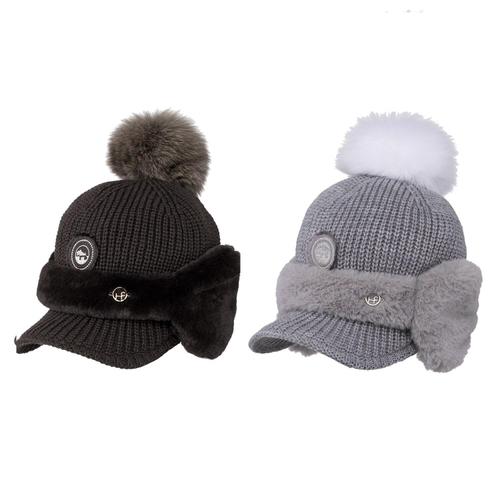 [라라데이빗] 여성 겨울 니트 방울 모자 귀달이 챙모자 따뜻한 방한모 캡모자 골프 볼캡 귀마개