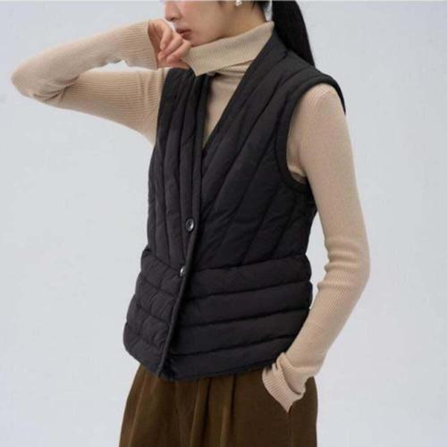 [오너클랜]인기상품 여자 오리털 경량 브이넥 투버튼 덕다운 패딩 조끼 [WFLKYHC_260304]