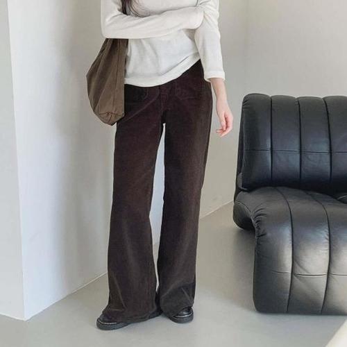 여성 기모 바지 일자핏 와이드 밴딩 여성 코듀로이 바지 골덴 팬츠 겨울