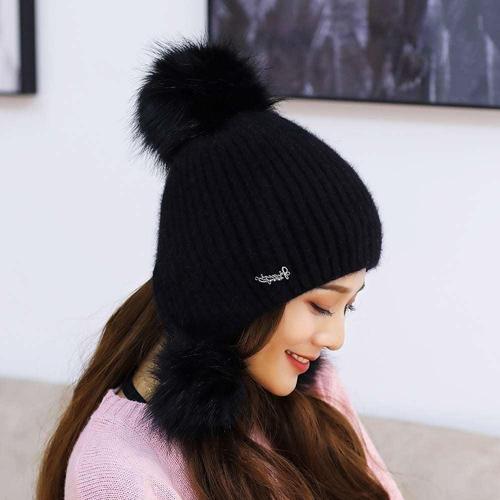 여성 앙고라 모자 블랙 귀덮개 귀달이 스키장 검정 WFHN9ES