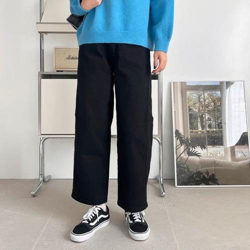[옷자락]여성 와이드핏 블랙 기모 테이퍼드 코튼 겨울 데님