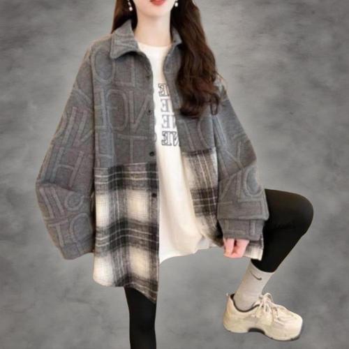 [셀러허브_여성트랜드패션]여자 여성 남방 체크 겨울 루즈핏 간절기 기모 셔츠 모직 긴팔