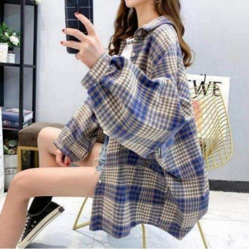 [옷자락]여성 일상 캐주얼 루즈핏 기모 체크 셔츠