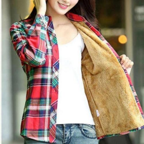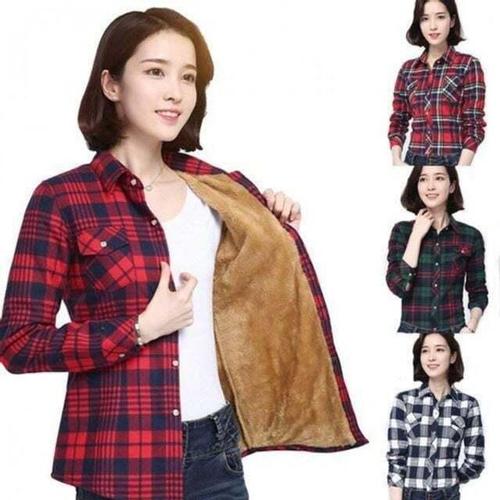 [셀러허브_여성트랜드패션]여성 기모 슬림 블라우스 셔츠 체크 융털 겨울 남방
