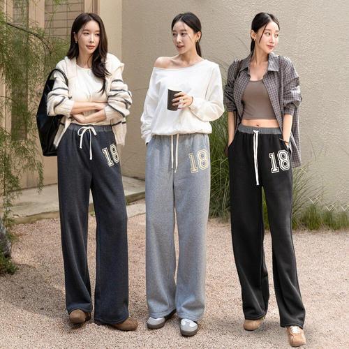 더보느 여성용 기모 트레이닝 밴딩 일자 팬츠