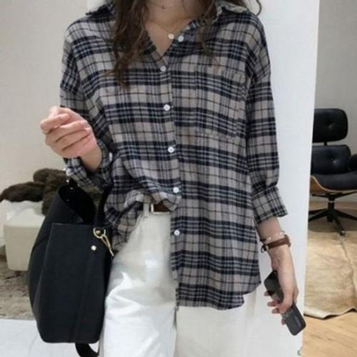 체크 무늬 프린트 버튼 포켓 셔츠 캐주얼 긴팔 셔츠 여성의류 SH580 TM