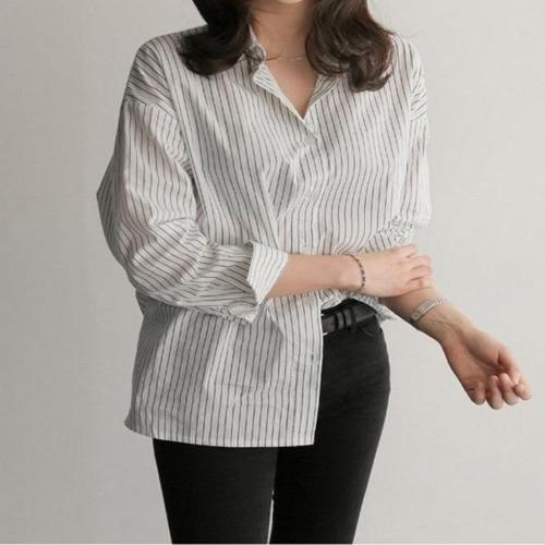 [엄지척]여자 데일리셔츠 루즈핏 스트라이프 여성남방 셔츠_19644551_667501