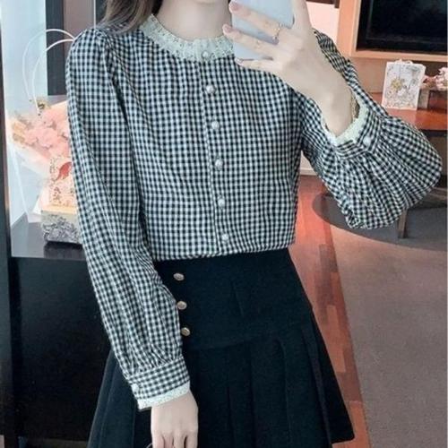 [엄지척]체크블라우스 레이스 니트가디건 어깨셔링 넥 포인트_19646005_667501