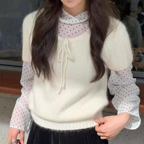 [다잇템][다잇템] 여성 울 도트 블라우스 귀여운 코디 니트_23470903_588872