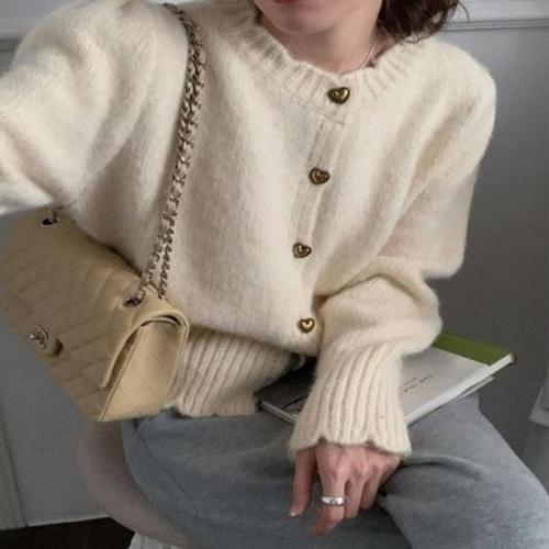 [다잇템]여자 버튼 키치무드 코디 남방 빅사이즈 니트