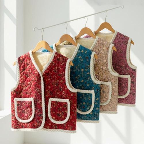 여성 겨울 기모 촌캉스 할머니 김장 플라워 양털 조끼 WFLPHKZ