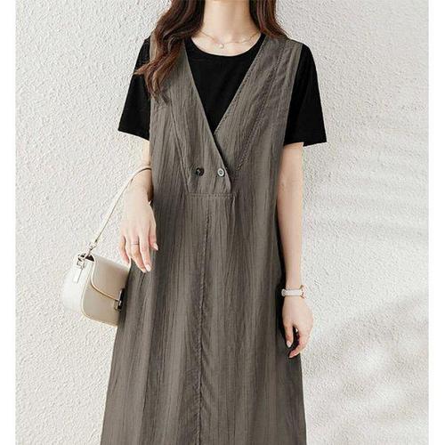 [패션시그널]티셔츠레이어드 브이랩 원피스 A198F6