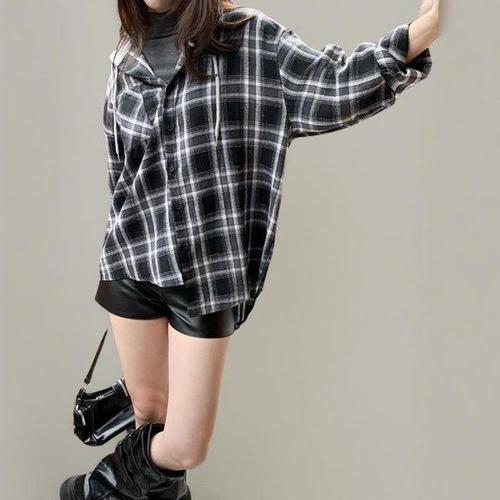 [신상오픈런]여성 후드티 체크 레이어드 캐주얼 셔츠