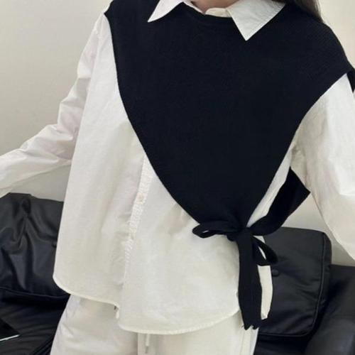 [엄지척]여성 2컬러 셔츠 레이어드 언발란스 니트 숄 베스트_19802356_667501