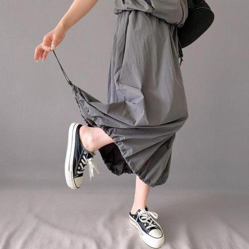 [신상오픈런]여성 크롭 후드 반팔 집업 카고 롱 스커트 세트