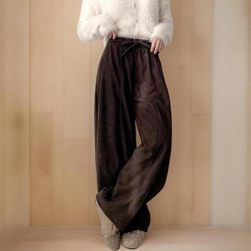 [신상오픈런]여성 벌룬핏 겨울 기모 와이드 골덴 리본 벨트 바지