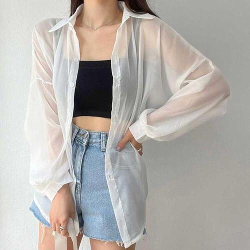 [셀러허브_여성트랜드패션]ONM 시스루 루즈핏 썸머 린넨 데일리 오버핏 비치셔츠