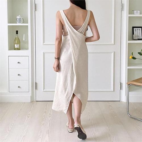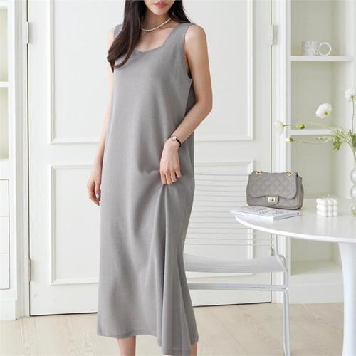 [오너클랜]인기상품 린넨 롱 원피스 여성 나시 드레스 뒤트임 치마 디자인 [WFLLASA_260304]