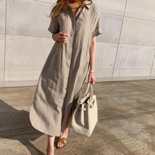 [디자이너몰]여성 린넨 버튼업 반팔 셔츠 원피스 드레스