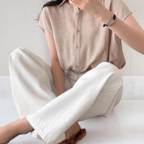 [옷자락]여성 클래식 톤다운 컬러 면 린넨 반팔 셔츠