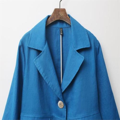 WEIHAN 여성 칠부 린넨 정장 코트 슬림 얇은 상의 면 마 블레이저 여름 숏 자켓