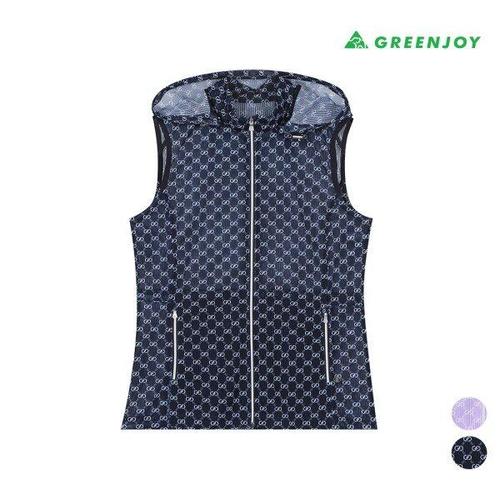 [그린조이]여성 로고 프린트 메쉬 후드 집업 베스트