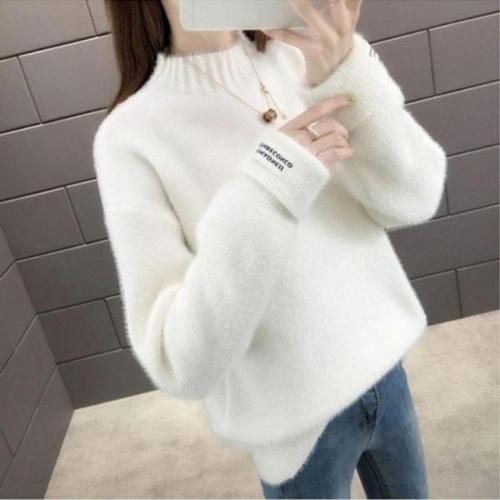 봄 가을 여성 반폴라 니트 빅사이즈 루즈핏 스웨터 긴팔 니트티 패션 여자 긴팔 목폴라티 CJJ