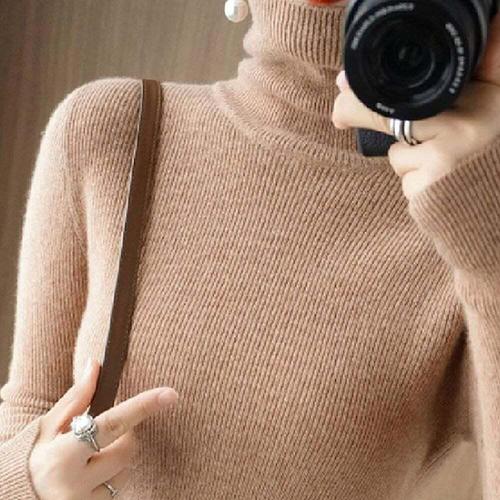 오스틱니 여자 겨울 부드럽고 편안한 캐시미어 터틀넥 보온 긴팔 니트티