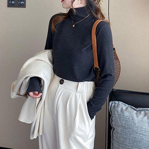 핑크셀럽 여성용 비스코스 포근 목 폴라 니트 티셔츠