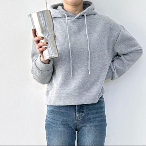 [엄지척]안감 방한 세미크롭 스타일 겨울 무지 후드티_19644822_667501