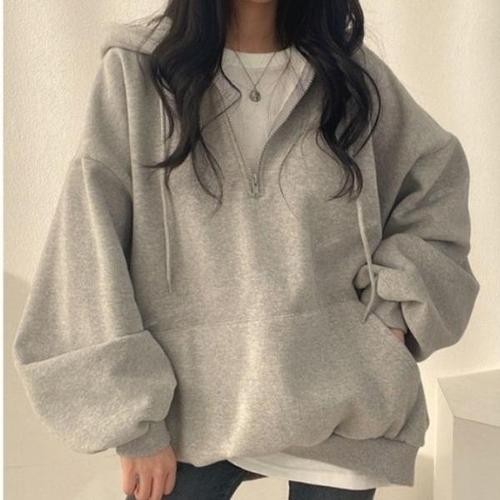 [엄지척]베이직 겨울 윈터 후드티 무지 따뜻 반집업 1컬러 여_19646129_667501