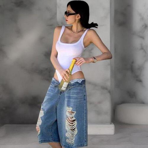 [다잇템_패션]여성 SS 단추 휴양 백리스 골지 바디수트