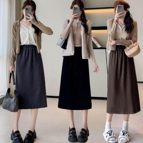[2종세트] 가비진 여성용 따뜻 안감 기모 스판 밴드 머메이드 핏 롱스커트 치마 빅사이즈까지