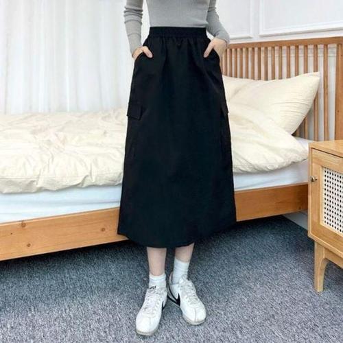 [에이치플러스몰]지키루 바스락 카고 밴드 유니크 롱핏미니스커트