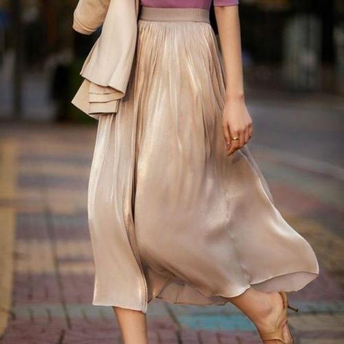[에이치플러스몰]캐주얼 샤이닝 링클 플레어실루엣밴드 롱스커트