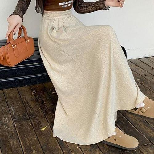 가비진 여성용 따뜻 포근 안감 기모 쫀쫀 허리 밴딩 H라인 뒤트임 롱 스커트 치마 겨울 스판 롱치마 빅사이즈까지