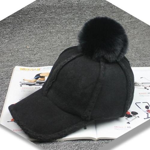 [다잇템]여성 니트캡 보온 모자 왕방울 챙모자 털모자 (10957158A)