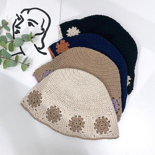 [다잇템]여자 면니트 휴가룩 수제 귀여운 꽃무늬 모자 (10365420A)