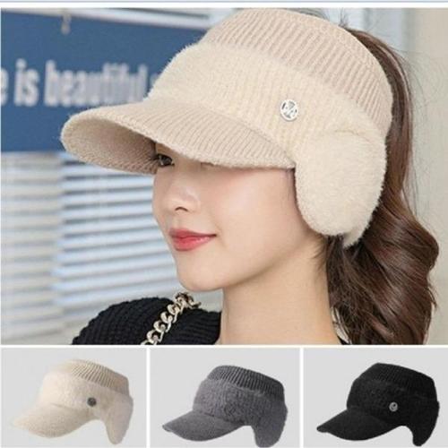 [에이치플러스몰]여성 방한 데일리 썬캡 니트 모자