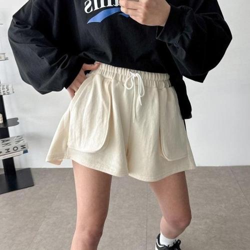 [다잇템][다잇템] 여자 고무줄 트랙수트 코튼 봄여름 아웃포켓 와이드핏 반바지_20465357_588872