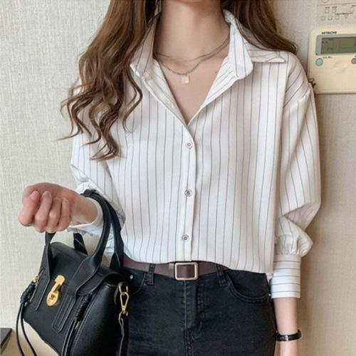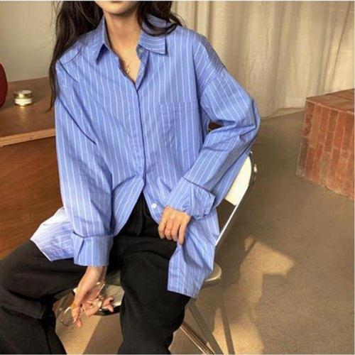 [오너클랜]인기상품 여성용 긴팔 모던 디자인 줄무늬 셔츠 데일리웨어 [WFLLLXF_260305]