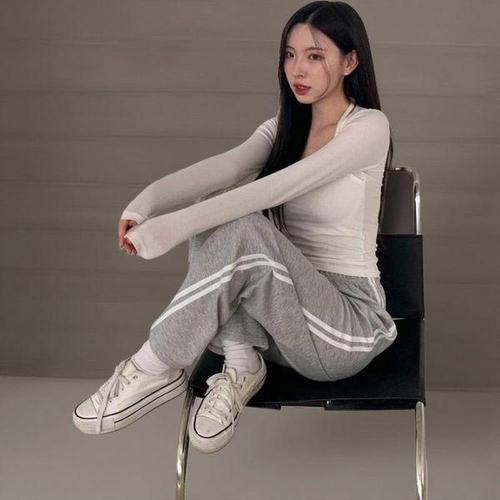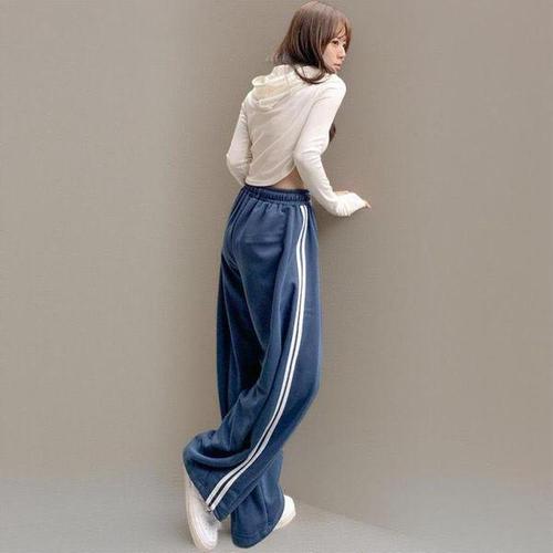 [신상오픈런]여성용 와이드핏 캐주얼 트레이닝 팬츠 밑단 스트링 밴딩